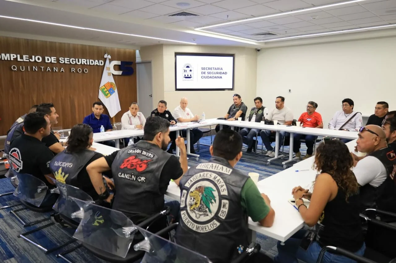 Una comitiva de motociclistas se reunió este jueves en el C5 con varias autoridades de Quintana Roo, con quienes acordaron tomar en cuenta la postura de todos los involucrados y tener una segunda mesa de trabajo, el próximo viernes 9 de agosto, para evaluar los elementos que faciliten la elaboración de un reglamento equilibrado para la llamada  “Ley Chaleco”.