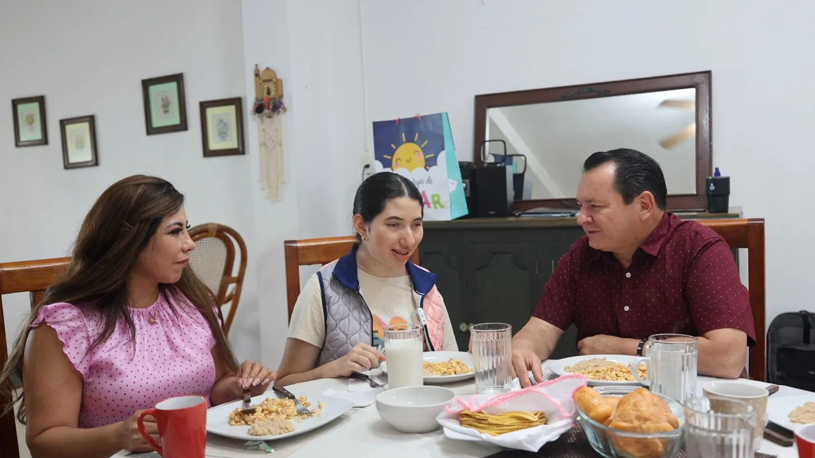 Junto a su madre, Maribel Muñoz Escalante, Majo preparó el desayuno y puso la mesa para recibir la visita del Gobernador y la presidenta del DIF Yucatán quienes, a lo largo del desayuno, escucharon a la señora Maribel detallar la necesidad de atención médica de su hija.
