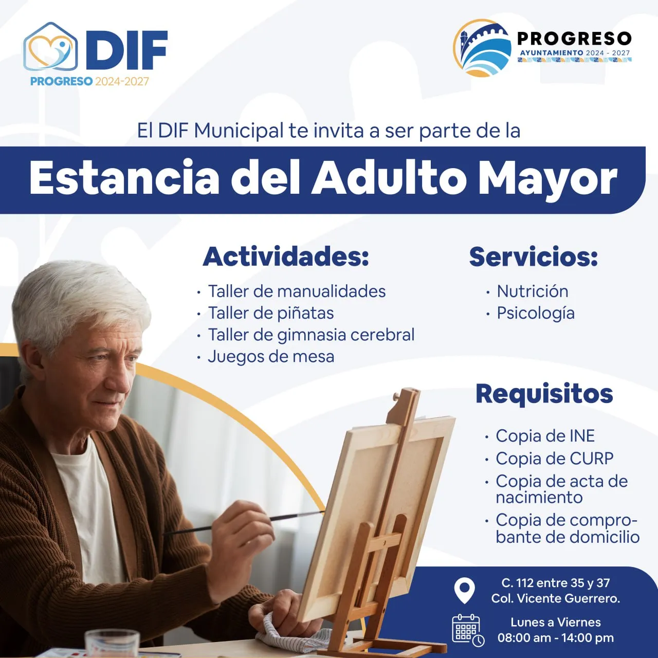 Con el fin de brindar apoyo, compañía y actividades enriquecedoras para los adultos mayores del municipio, el Ayuntamiento de Progreso, a través del DIF municipal, invita a la ciudadanía a conocer y formar parte de la Estancia del Adulto Mayor.