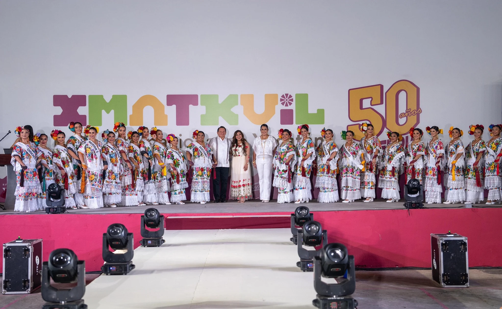Junto a Kenia Walldina Sauri Maradiaga, alcaldesa de Umán, el gobernador disfrutó de esta fiesta en la que se hizo presente el talento de la yucateca Valeria Sosa, quien ha compartido su voz y pasión en programas de televisión y radio. Previo al espectáculo, las 25 jóvenes representantes de los municipios de Cansahcab, Chocholá, Conkal, Hocabá, Hoctún, Hunucmá, Ixil, Kanasín, Kantunil, Mérida, Motul, Progreso, Sanahcat, Seyé, Sinanché, Tahmek, Tekantó, Timucuy, Tixkokob, Tixpéual, Umán, Xocchel y Yaxkukul, realizaron su presentación.