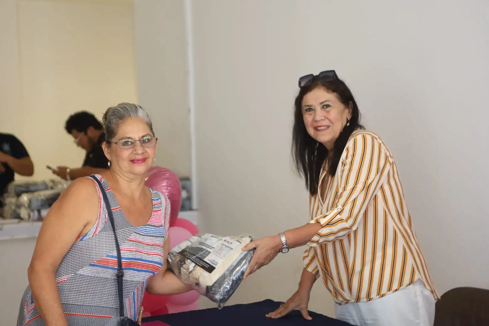 La presidenta honoraria del DIF municipal, Mtra. Dolores del Carmen González Pacheco, y la directora de dicha institución, Leslie Cristina González Gamboa, entregaron ayer por la tarde asistencia alimentaria a 41 personas inscritas en el programa estatal “Apoyo para pacientes con cáncer”.