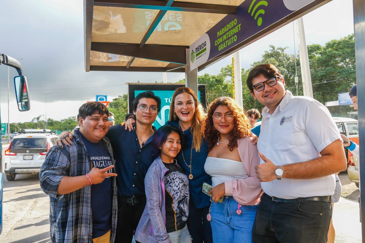 La alcaldesa visitó uno de los paraderos renovados acompañada de estudiantes del Campus de Ciencias Sociales de la Universidad Autónoma de Yucatán (UADY). Juntos, observaron los mejoramientos realizados y escucharon opiniones de los usuarios.