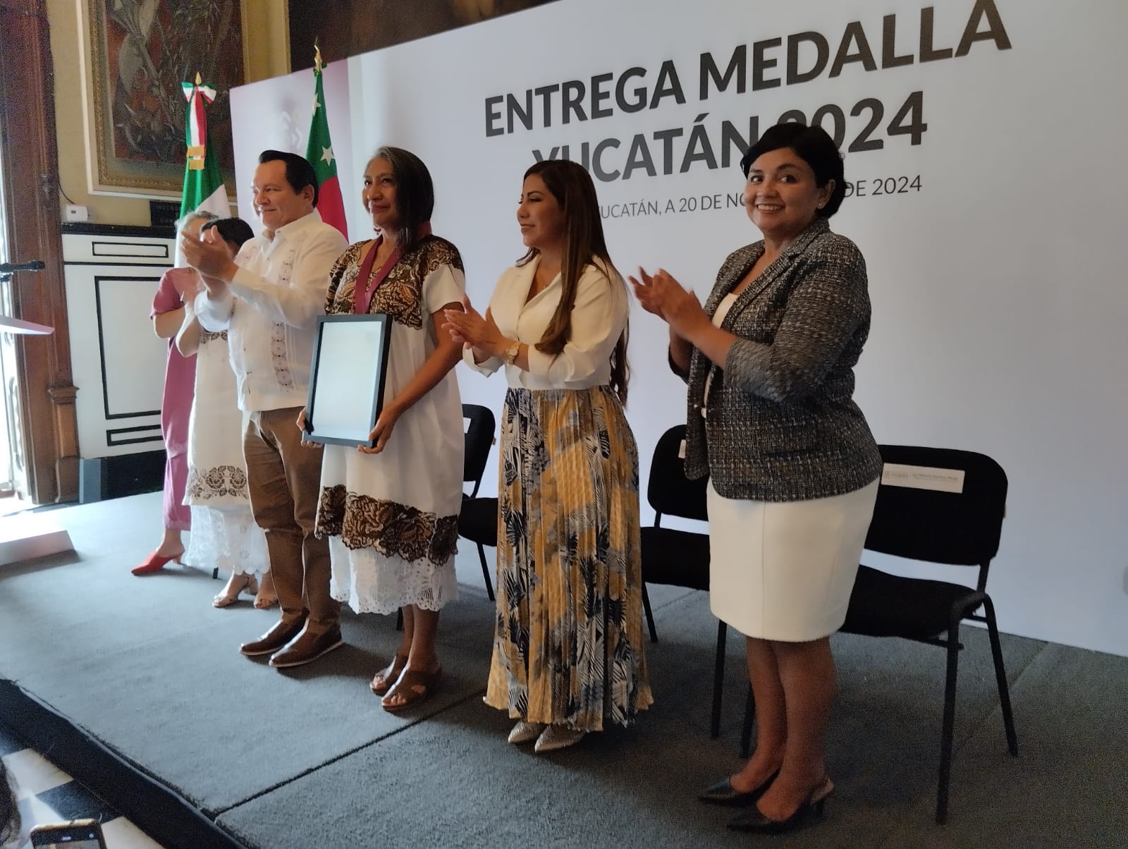 “Me llena de emoción ver con cuánto cariño le aplaudimos todos a la maestra Socorro Loeza Flores quien en este día es galardonada. En esta ocasión ha sido un honor para mí entregar la medalla a la maestra Socorro Loeza Flores, una mujer que ha dedicado su vida y trayectoria al fortalecimiento de nuestra lengua y cultura maya, utilizando el arte, el teatro y las letras como herramientas poderosas de conexión y transformación comunitaria”, expresó por su parte el gobernador Joaquín Díaz Mena.