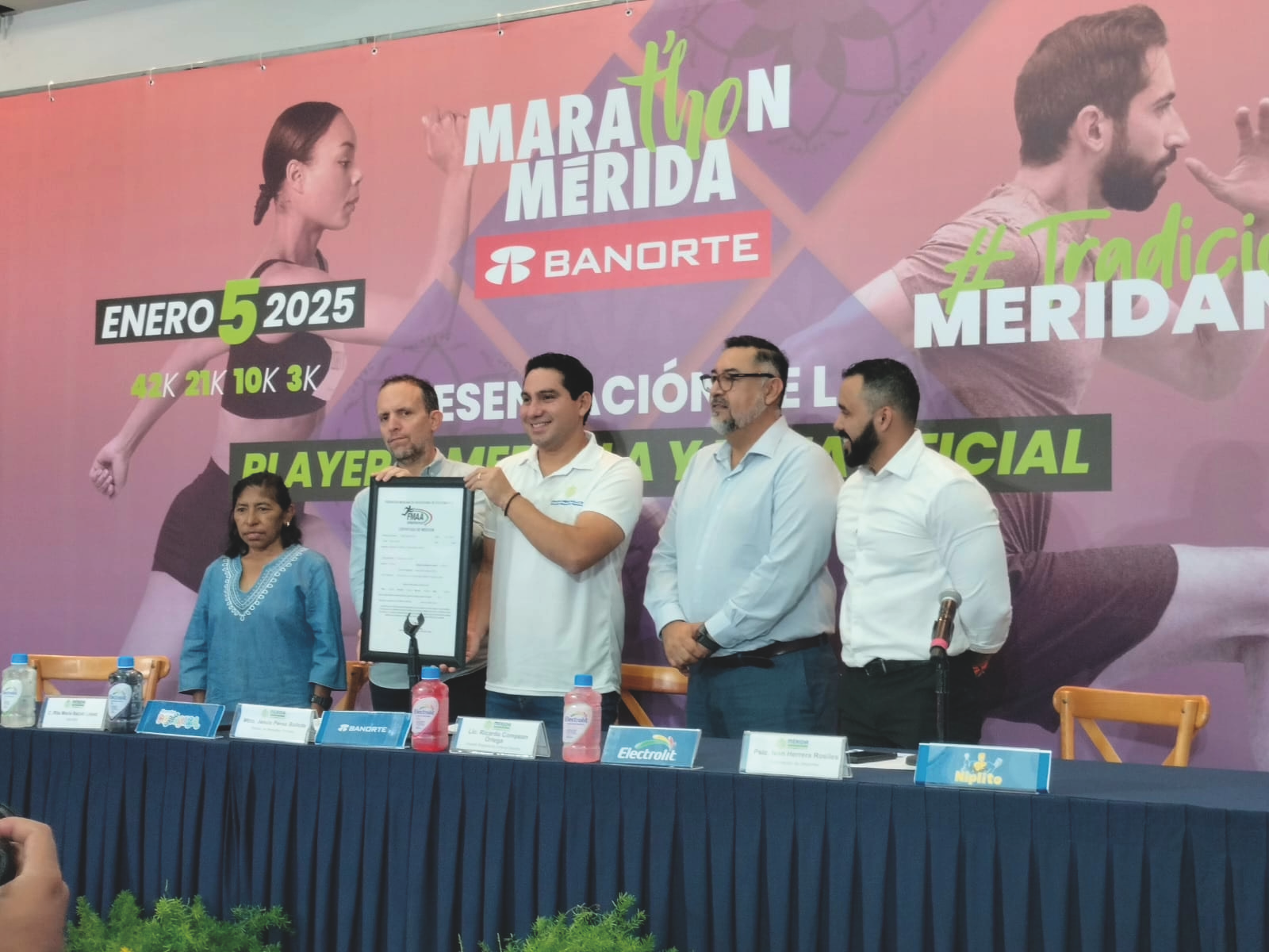 Asistió, entre otros, la presidenta de la Asociación de Atletismo de Yucatán, Miriam Canul Cob e Hyram Martínez Zapata, presidente del comité de ciudadanos del maratón, así como Iván Herrera Rosiles, subdirector de deportes del Ayuntamiento de Mérida.