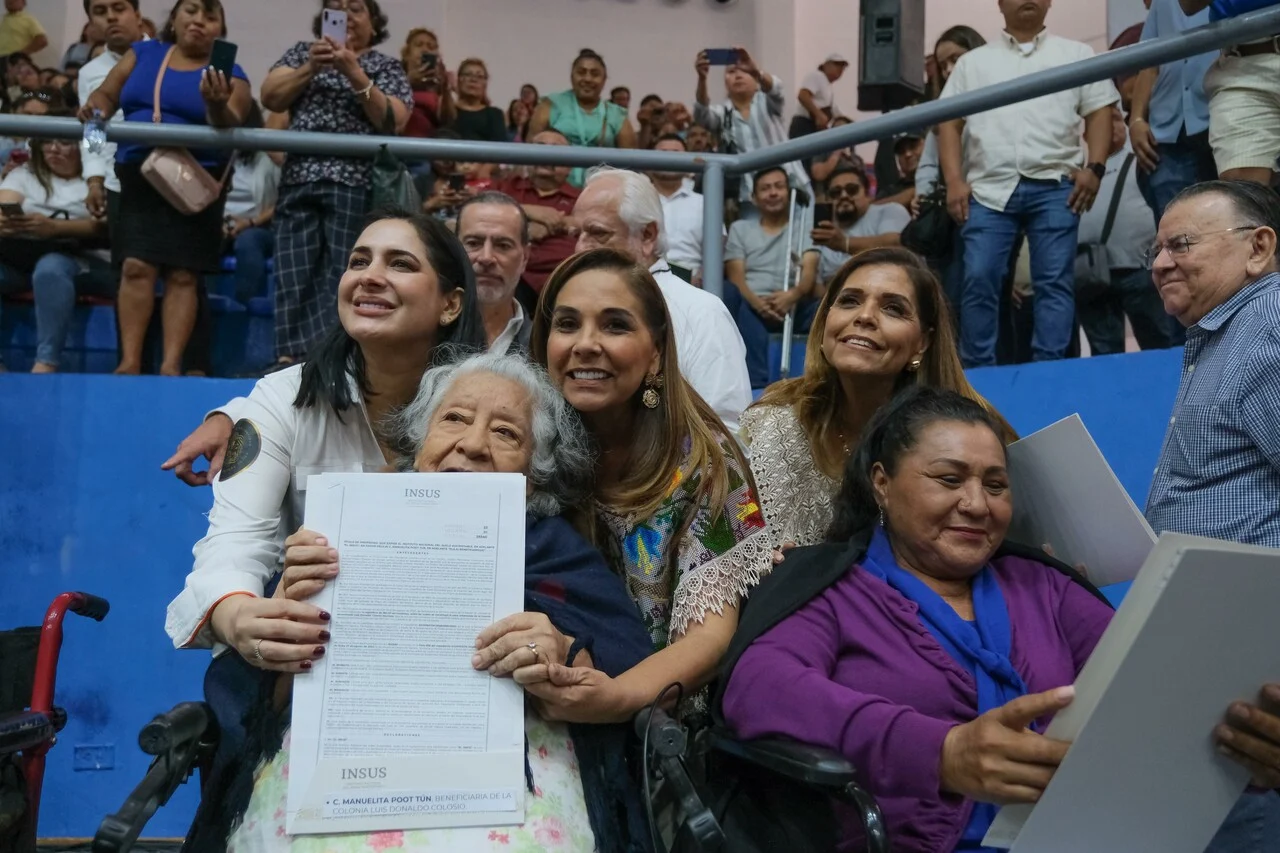 Acompañada de la presidenta municipal Estefanía Mercado, la gobernadora de Quintana Roo recordó que la titulación de la colonia Colosio es un compromiso del entonces presidente Andrés Manuel López Obrador, quien entregó los primeros mil 774 títulos, y ahora con las gestiones de la primera mujer presidenta Claudia Sheinbaum, se entregan los documentos de hoy.