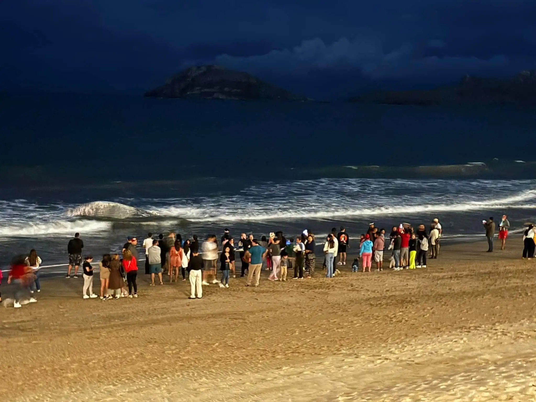 Una ballena jorobada de más de 120 metros de largo y varias toneladas de peso recaló ayer en playas de Mazatlán, generando todo un espectáculo para vecinos de la zona.
