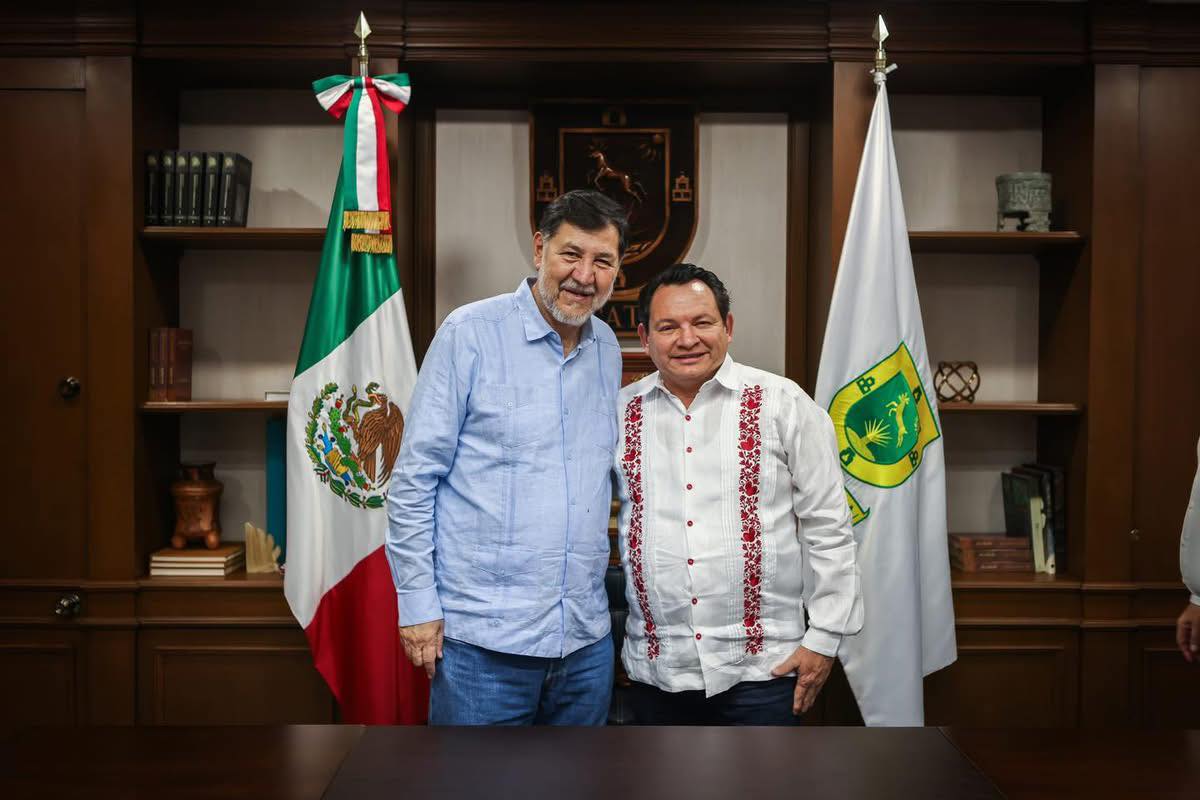 Gerardo Fernández Noroña, presidente del Senado de México, acudió al palacio de Gobierno para sostener una reunión con el mandatario yucateco Joaquín Díaz Mena.