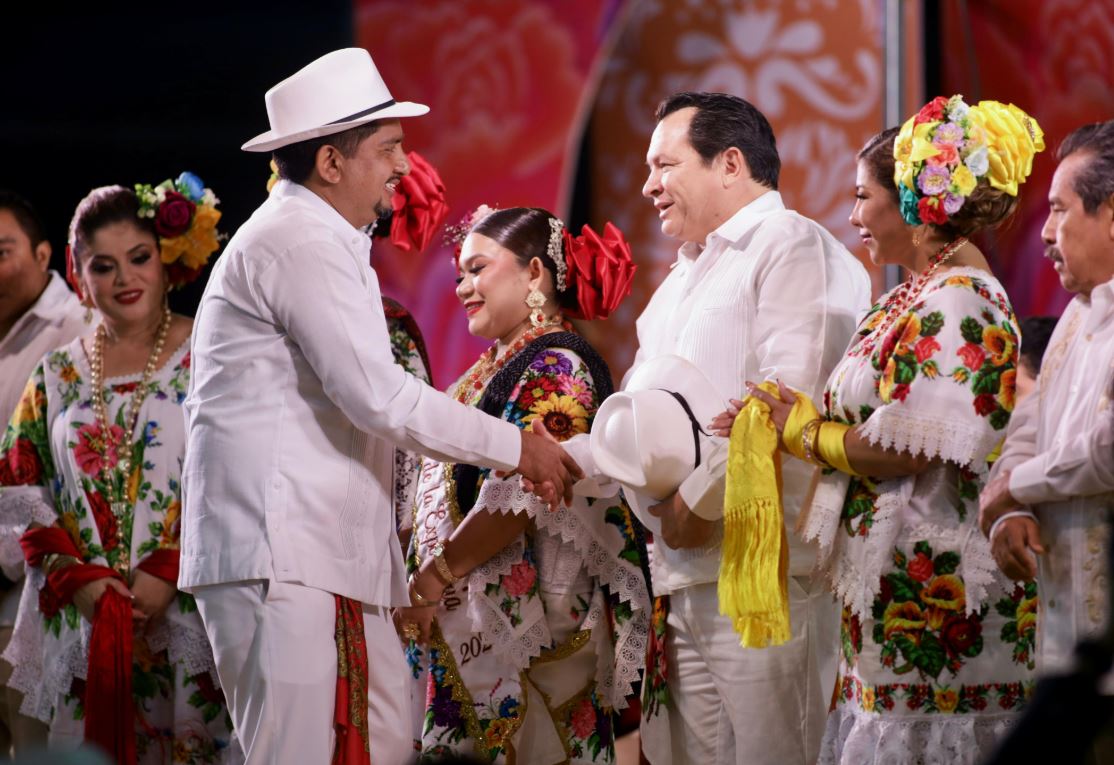 Acompañado de la presidenta honoraria del Sistema para el Desarrollo Integral de la Familia (DIF) Yucatán, la maestra Wendy Méndez Naal, y del alcalde anfitrión, Homero Novelo Burgos, el mandatario estatal encabezó el corte del listón inaugural de esta magna fiesta, así como la coronación de Suemi Cupul Cupul, reina de la edición 35 de la feria patronal, y de Margely May Dzul, reina de la Etnia Maya.