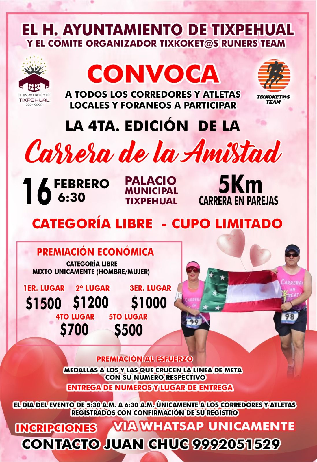 El Ayuntamiento de Tixpéhual invita a toda la comunidad a participar en la 4ta. Carrera de la Amistad, un evento deportivo que promueve la unidad, la salud y el bienestar de los habitantes del municipio.