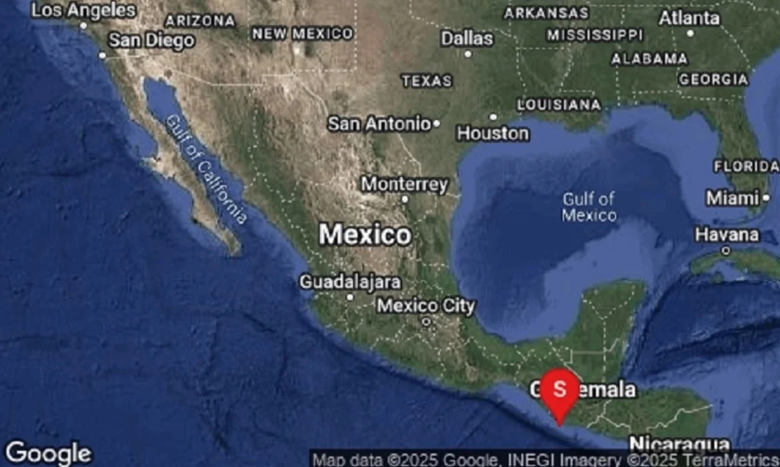 El sismo sucedió a las 01:01 horas y se localizó 107 kilómetros al sureste de Ciudad Hidalgo, cabecera municipal de Suchiate, situado en la frontera con Guatemala.
