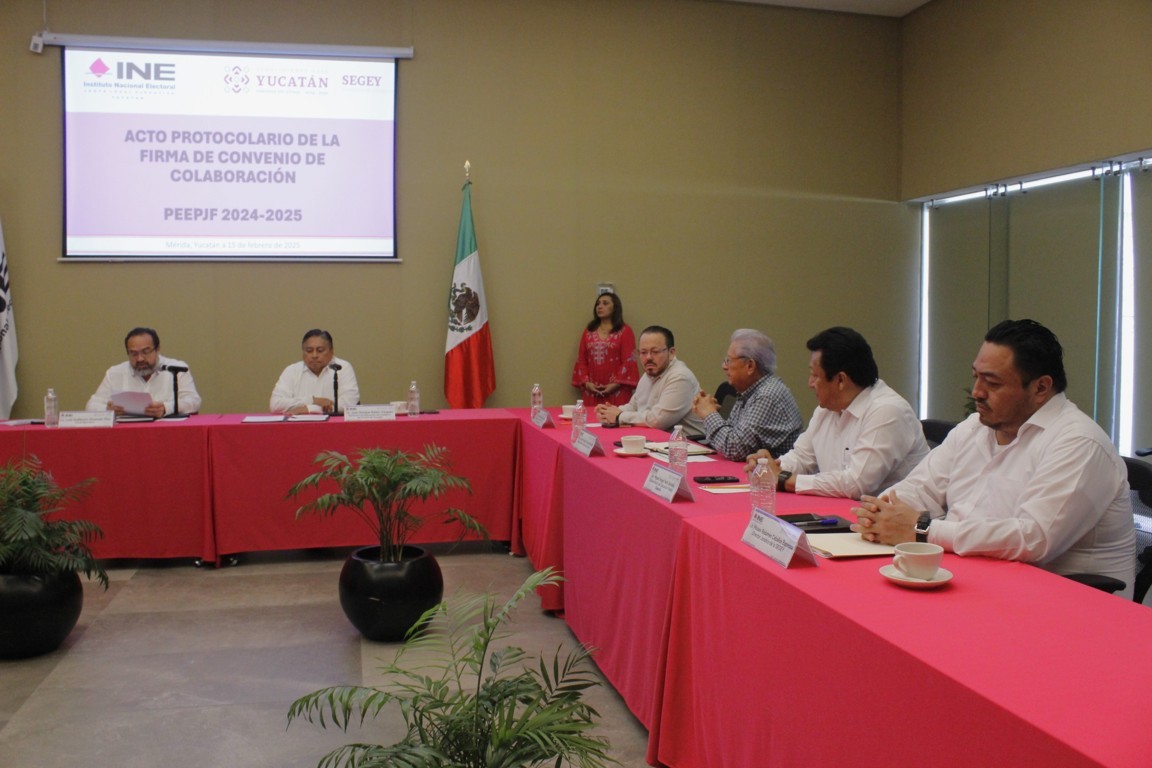 El Instituto Nacional Electoral (INE) en Yucatán y la Secretaría de Educación del Gobierno del Estado de Yucatán (SEGEY) signaron un convenio de colaboración con el objeto de permitir el uso de aulas, espacios y en su caso, el mobiliario de las escuelas donde se instalarán casillas con motivo del Proceso Electoral Extraordinario del Poder Judicial de la Federación 2024-2025.