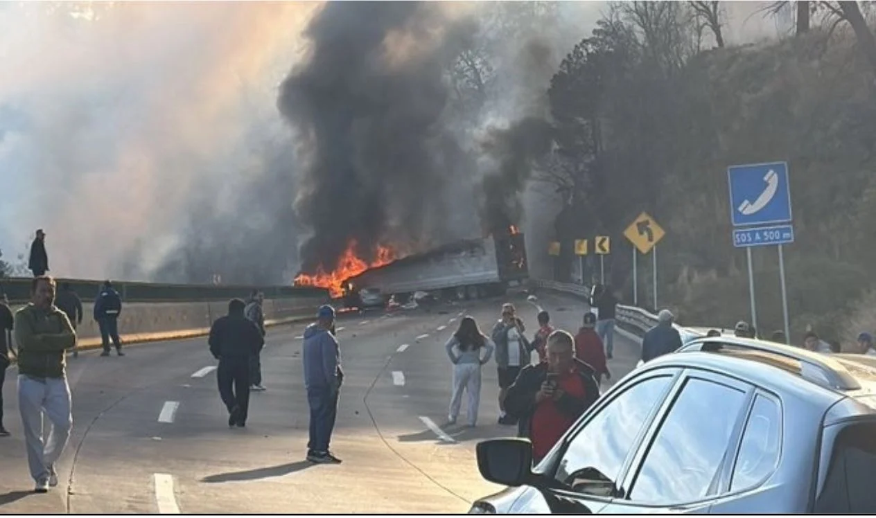 En el lugar una pipa de gas perdió el control impactando a varios vehículos particulares para luego volcar y caer a un barranco de unos 10 metros de profundidad. Tanto la pipa de gas como los vehículos se incendiaron.