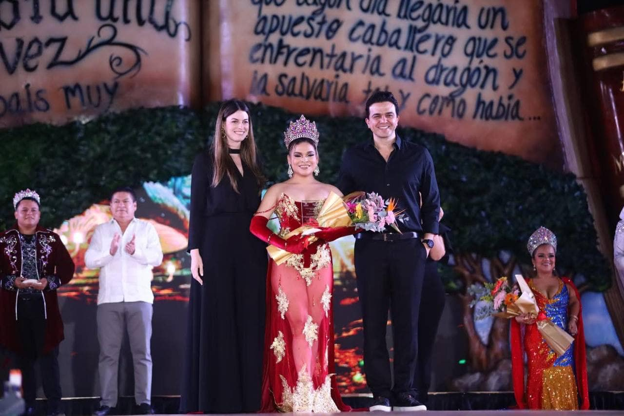 Previo a la presentación artística de las y los reyes, el alcalde, acompañado también de su esposa, la señora Alexis Abimerhi Douglas; de la presidenta honoraria del DIF Municipal, Dolores González Pacheco; de la presidenta del Comité de Carnaval de Progreso, Marytere Bates Hevia, así como de las secretarias de Finanzas, y de Cultura y Turismo de dicho Comité, Patricia Rosado González y Carmen Gutiérrez Rebolledo, respectivamente, colocaron corona y banda a los nuevos reyes.