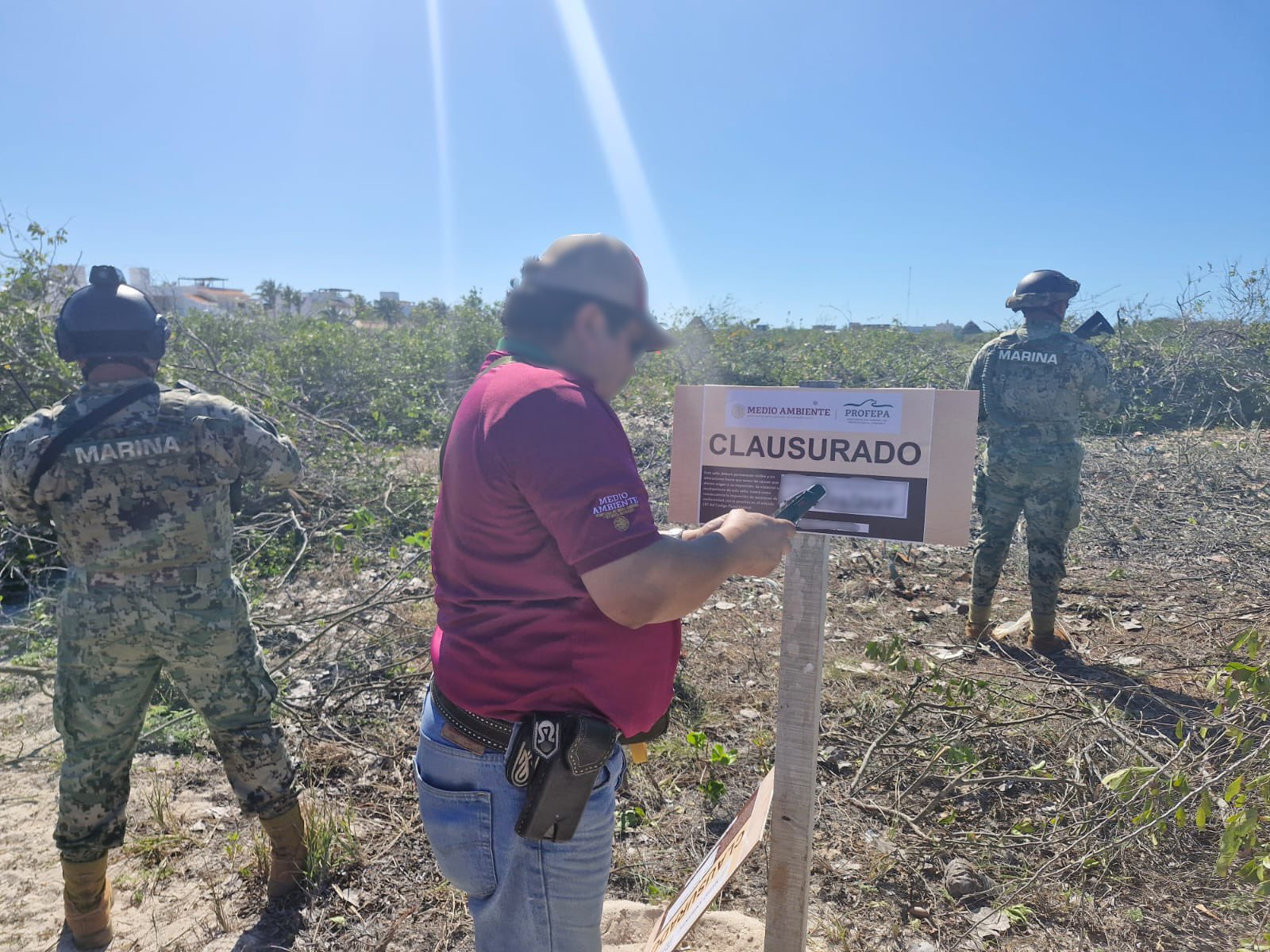 Acompañada por la Secretaría de Marina, la Secretaría de la Defensa Nacional y la Guardia Nacional, la Profepa aseguró el área con sellos de clausura.
