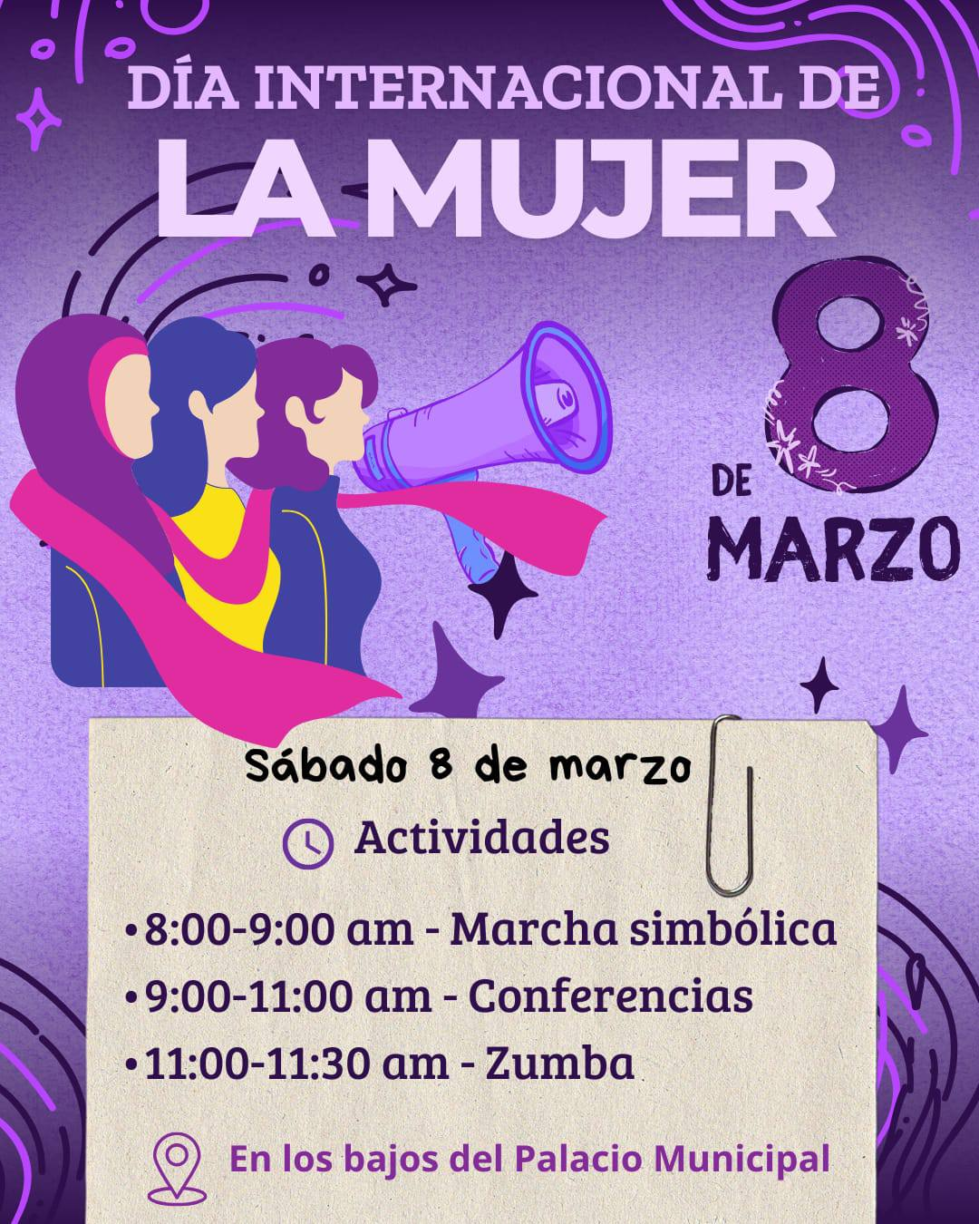 La actividad se llevará a cabo el próximo sábado 08 de marzo, a partir de las 8:00 A.M., teniendo como punto de reunión los Bajos del Palacio Municipal. Se recomienda a las y los asistentes llegar con 15 minutos de anticipación y portar carteles en apoyo al movimiento.