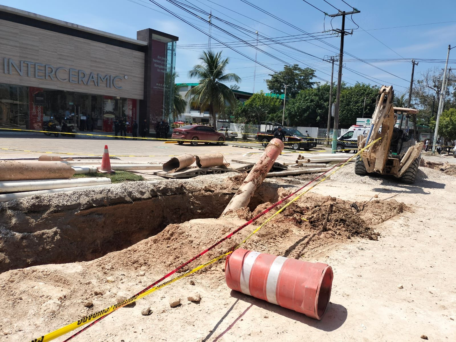 Autoridades reportaron el fallecimiento de dos personas que realizaban labores de excavación en la avenida Insurgentes entre Cornelio Lizárraga y Aaron Merino, en Chetumal, en una obra de introducción de agua potable.