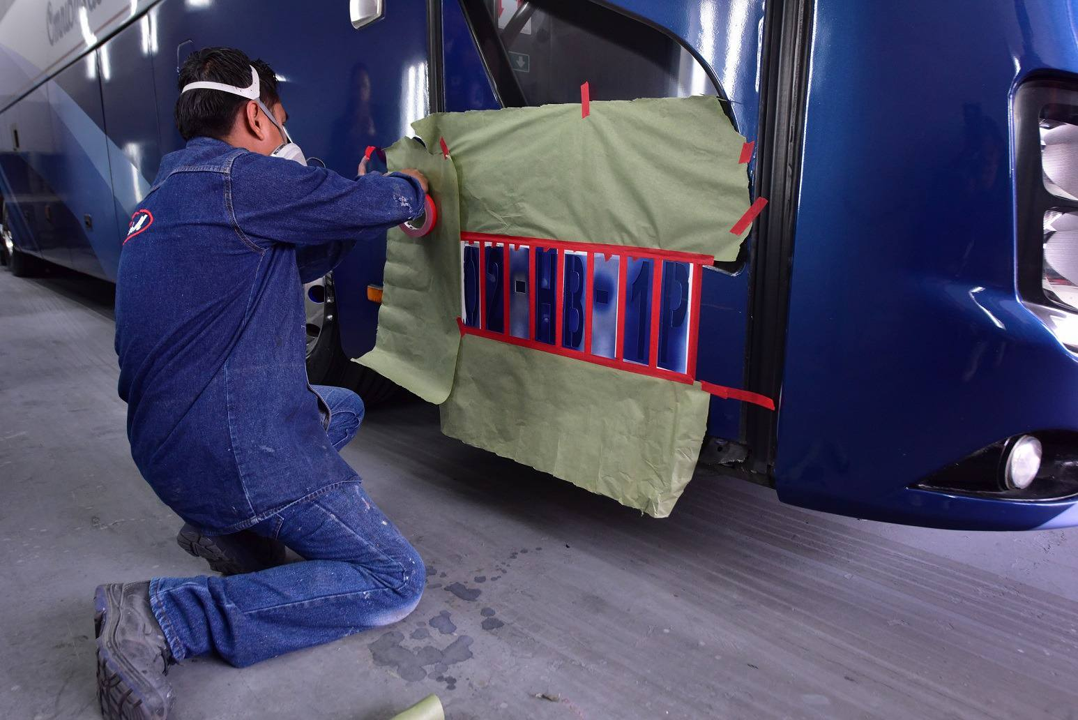 En el caso del autotransporte de pasajeros, deben llevar por lo menos cuatro marcajes: en la puerta de servicio, ventanilla trasera derecha, parte trasera y toldo, cada posición con medidas específicas.