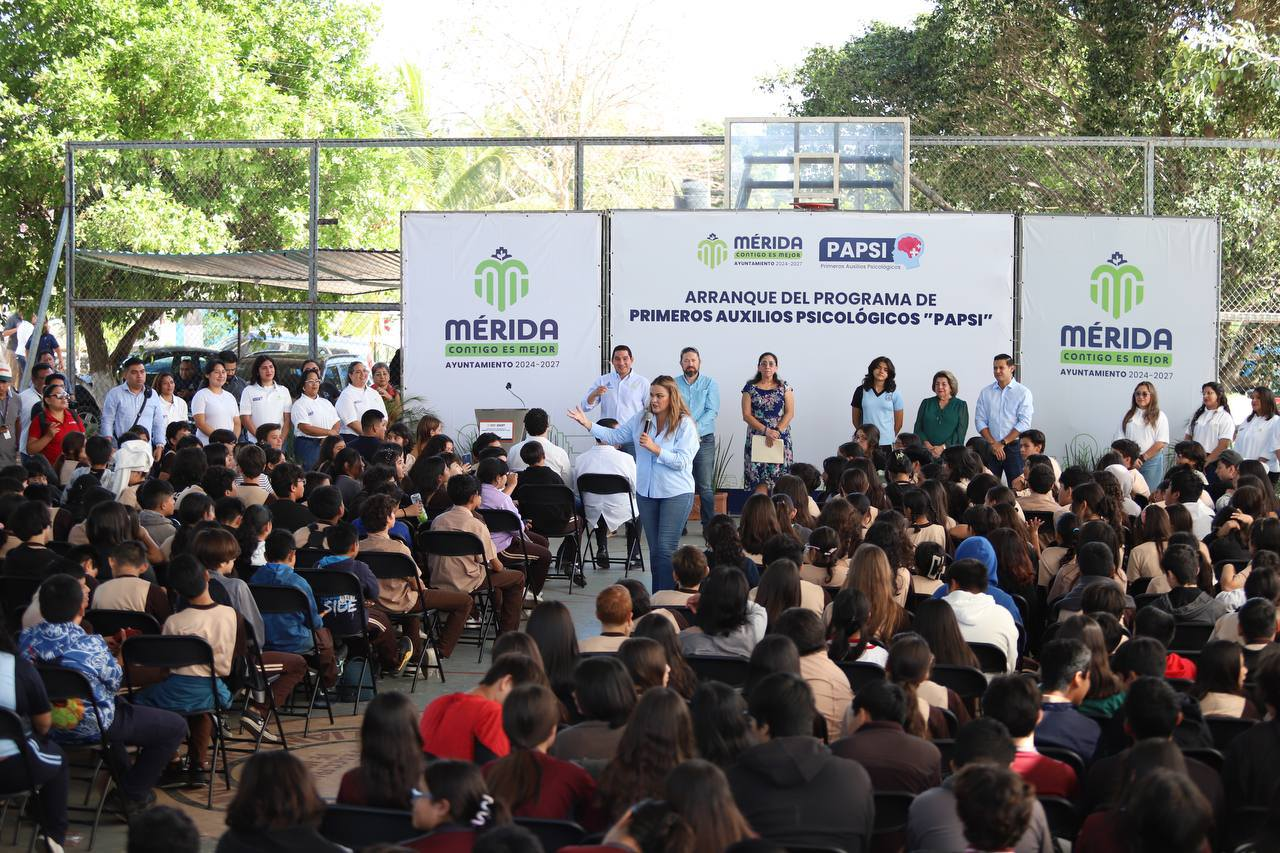 Para aumentar la atención a la salud mental y emocional de las adolescencias y juventudes de Mérida y sus comisarías, la Presidenta Municipal Cecilia Patrón Laviada presentó un nuevo programa de Primeros Auxilios Psicológicos (PAPSI) que involucra a las comunidades estudiantiles, maestros y padres de familia.