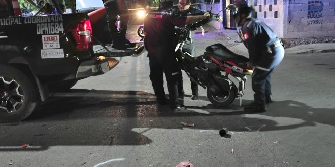 Un fuerte accidente entre una camioneta y una motoneta se registró anoche en la colonia Álvaro Obregón, específicamente en la calle 41 con cruce en la 36.