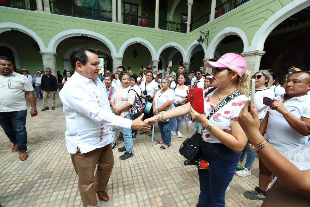El Gobernador Joaquín Díaz Mena reiteró su política de puertas abiertas al realizar un encuentro público en el patio central de Palacio de Gobierno con maestros y maestras de 27 municipios, quienes acudieron este día para solicitar ser escuchados, reafirmando así su voluntad de atender las necesidades y requerimientos del pueblo yucateco.