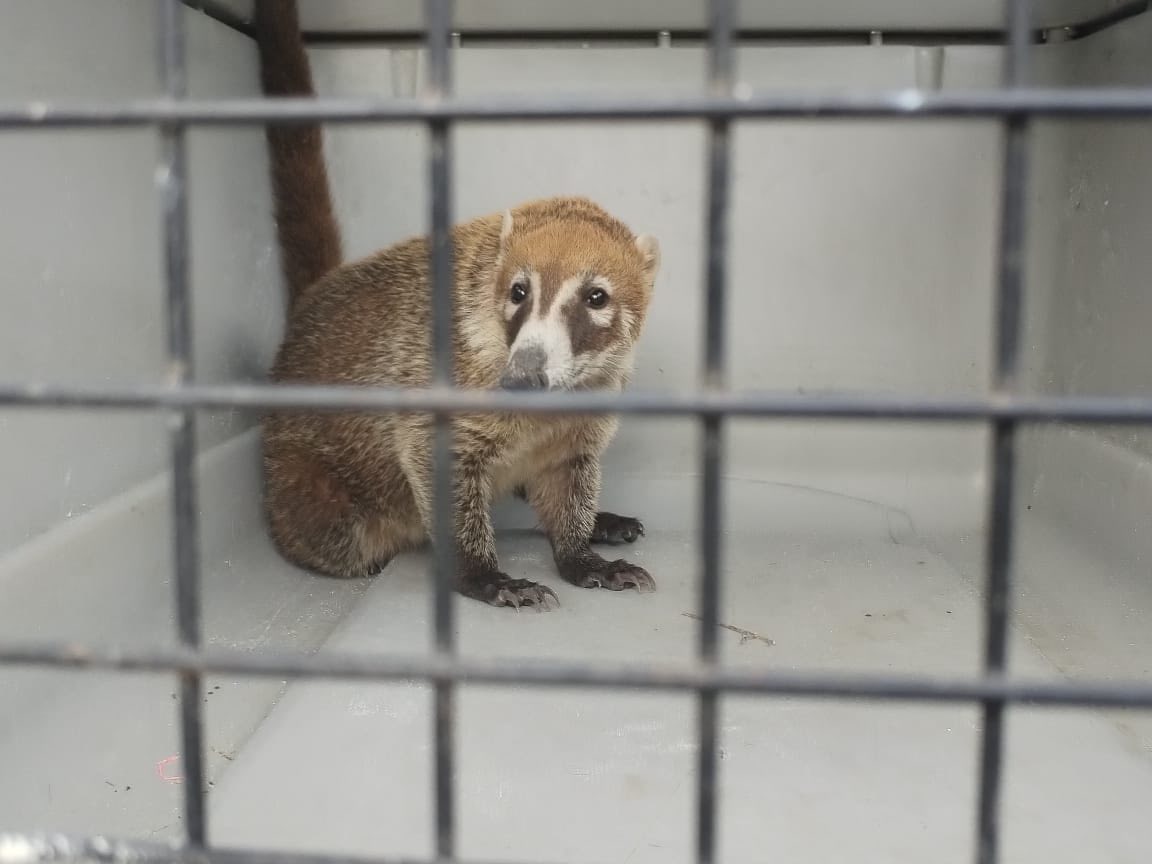 Policía Ecológica de Kanasín rescató a un coatí que deambulaba en la vía pública