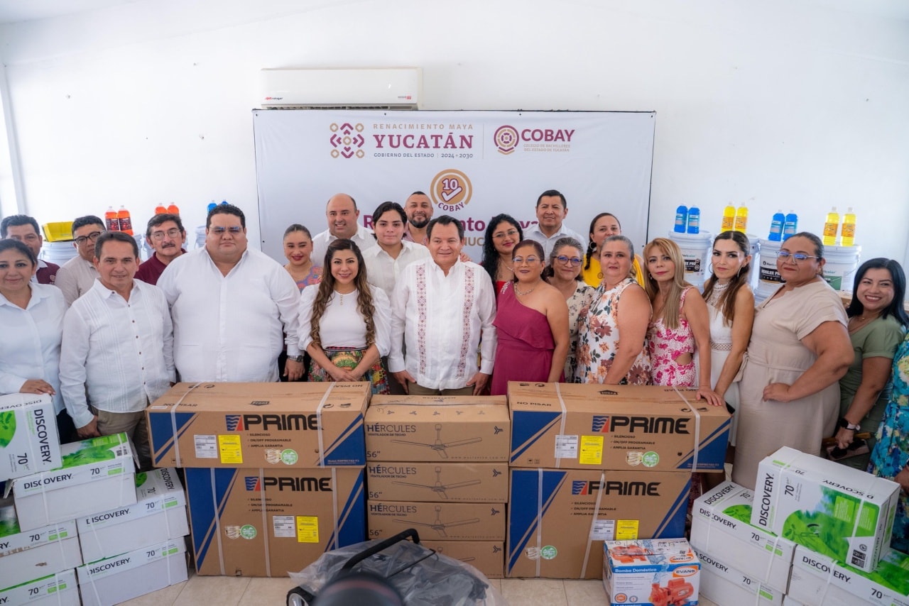 Asimismo, el titular del Ejecutivo estatal entregó al plantel Kinchil insumos y materiales del programa “Cobay de 10”, que con una inversión superior a ocho millones de pesos, busca promover espacios dignos y funcionales en los 72 planteles distribuidos en todo Yucatán.