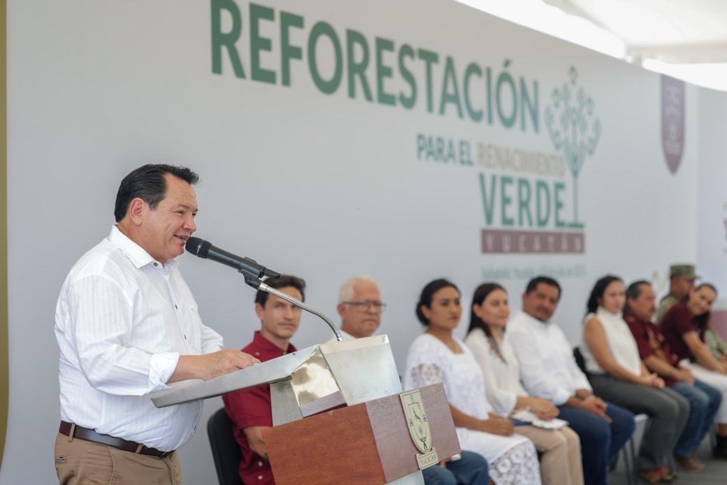 El Gobernador Joaquín Díaz Mena encabezó la plantación de más de 5,200 árboles en el Recinto Ferial de Valladolid, como parte de la estrategia estatal Renacimiento Verde, que tiene como meta sembrar 1 millón 320 mil árboles en todo el estado.