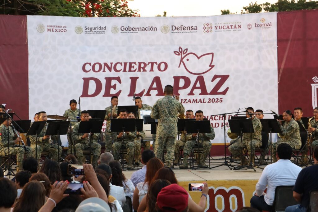 Familias izamaleñas y visitantes disfrutaron de una velada musical el pasado 1 de agosto, durante la presentación de la Banda de Música de la X Región Militar de la Secretaría de la Defensa Nacional (SEDENA) y el Mariachi de la Secretaría de Seguridad Pública (SSP) de Yucatán.
