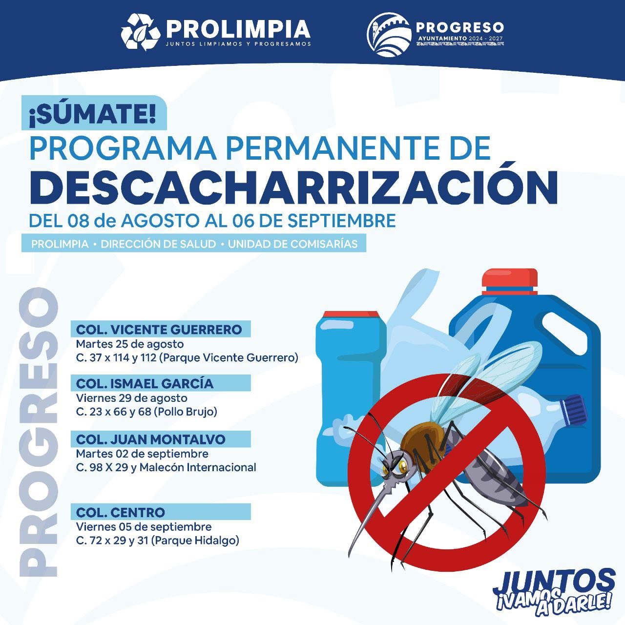 Con el objetivo de prevenir la reproducción de insectos transmisores de enfermedades y facilitar a la ciudadanía puntos de recolección de cacharros, el alcalde Erik Rihani, a través de la Dirección de Gestión Integral de Residuos Sólidos Prolimpia, puso en marcha ayer sábado, en la comisaría de Chuburná, la segunda etapa del Programa Permanente de Descacharrización.