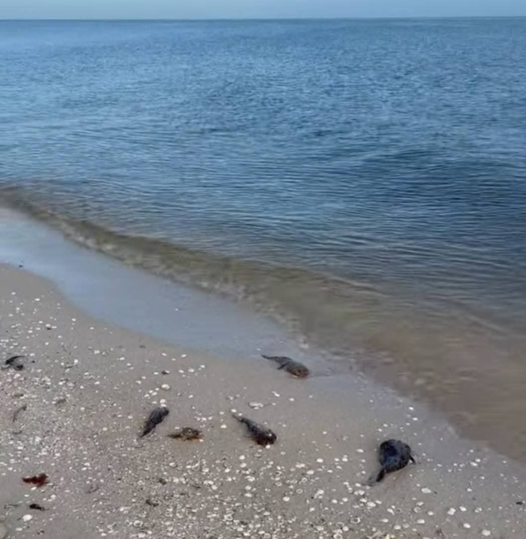 Habitantes de Sisal reportaron este jueves la llegada de la marea roja a las costas del puerto, donde se observaron peces sapo y otros ejemplares marinos recalados en la playa.