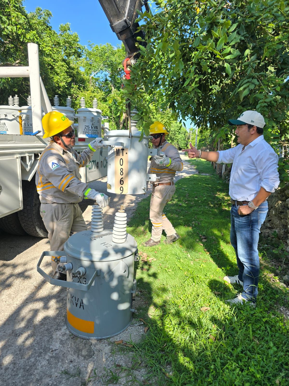 En respuesta a las constantes fallas en el suministro eléctrico reportadas por vecinos del municipio, el alcalde Jorge Kuh realizó una supervisión directa de los trabajos de mejoramiento que actualmente lleva a cabo personal de la Comisión Federal de Electricidad (CFE) en la localidad.