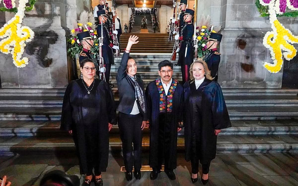 Horas antes, en el Zócalo, los ministros recibieron bastones de mando de pueblos indígenas y afromexicanos, prometiendo “sanear” el Poder Judicial. Sheinbaum, en su primer informe, destacó que estas reformas resarcieron el daño del periodo neoliberal, impulsadas por su antecesor, Andrés Manuel López Obrador.