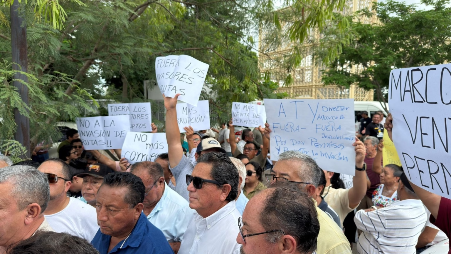 Taxistas del Frente Único de Trabajadores del Volante (FUTV) se manifestaron en las instalaciones de la Agencia de Transporte de Yucatán (ATY) para exigir la cancelación de permisos que, según denunciaron, se otorgaron a empresas que operan como taxis foráneos en distintas localidades del Estado.