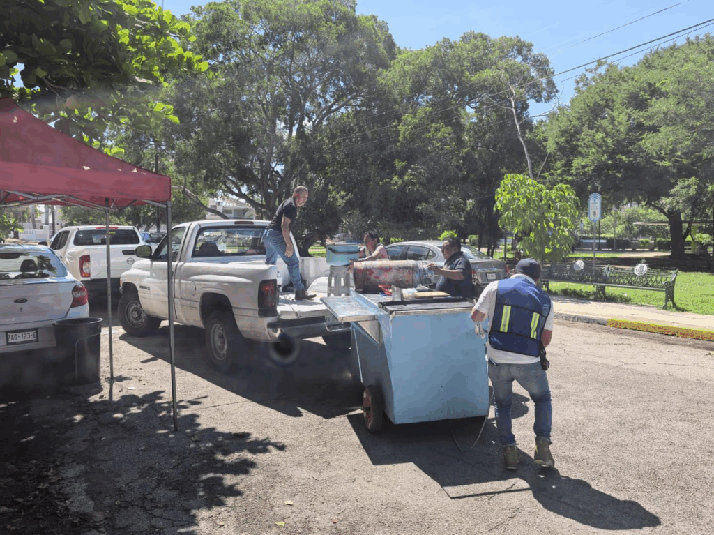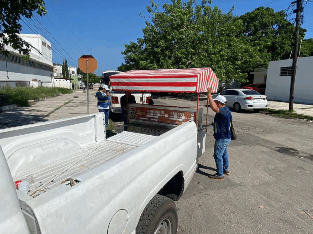 El primer operativo tuvo lugar en la calle 29 por 18 y 16 de la colonia México, frente al parque, donde fue retirado un carrito dedicado a la venta de tortas y tacos de mariscos. La intervención respondió a denuncias ciudadanas por acumulación de basura, presencia de fauna nociva y obstrucción de la vía pública.