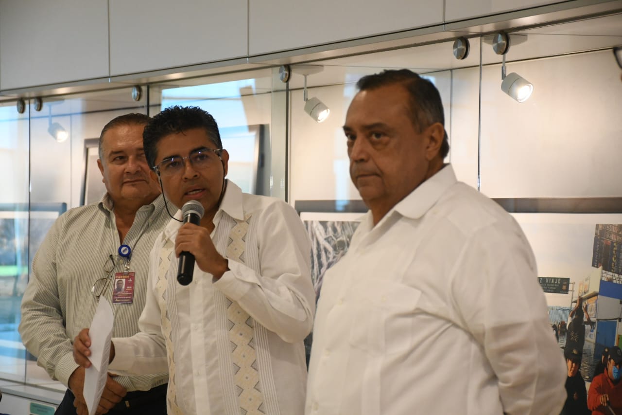 En el corte de listón acompañaron el Lic. Óscar Carrillo Maldonado, Administrador del Aeropuerto de Mérida; el Inspector Marco Aguirre, en representación de la AFAC Mérida; así como integrantes de la comunidad aeroportuaria, quienes se sumaron al inicio de esta importante exposición.