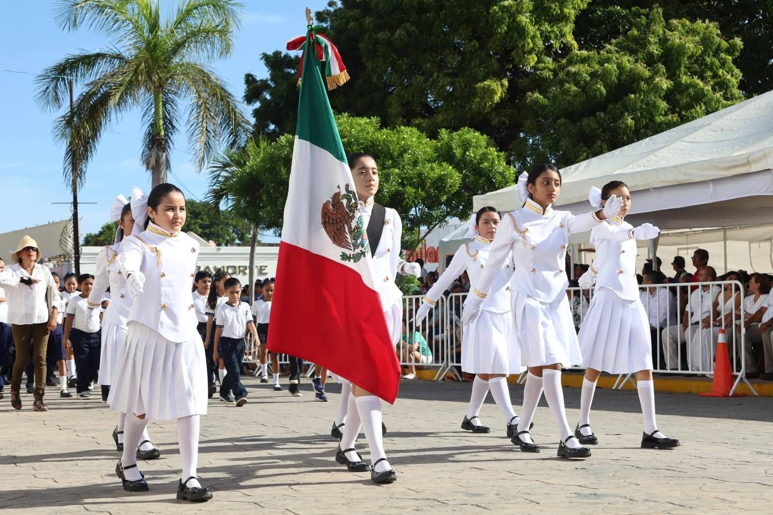 Asimismo con la participación de los planteles educativos, los contingentes, escolta, banda de Guerra de las escuelas y también en la que recorrieron las principales calles del municipio y al llegar frente al Palacio Municipal el Presidium cuyas autoridades saludaron a los contigentes.