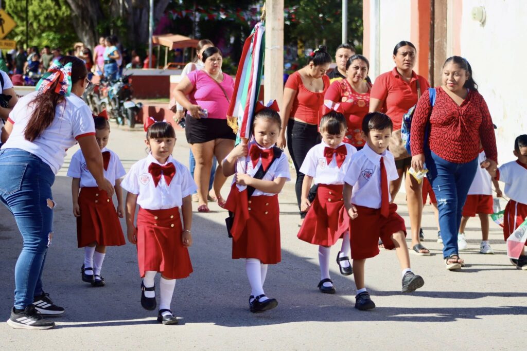 La jornada comenzó con la ceremonia de honores a la Bandera en el parque principal de Tunkás, para luego dar paso al desfile por las calles más representativas del municipio, donde decenas de familias se reunieron para presenciar el acto conmemorativo.
