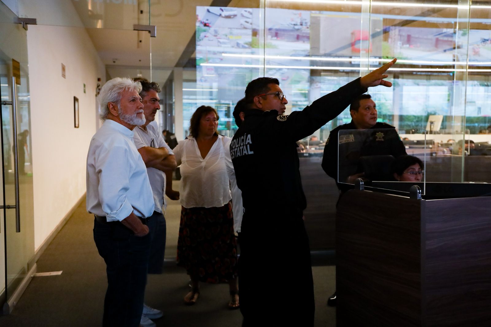 Como parte del recorrido, los visitantes conocieron el funcionamiento de las cámaras de videovigilancia y los protocolos de atención de llamadas al 9-1-1 y al 089, explicados por los comandantes Marcos Mena y Raúl Quintal.