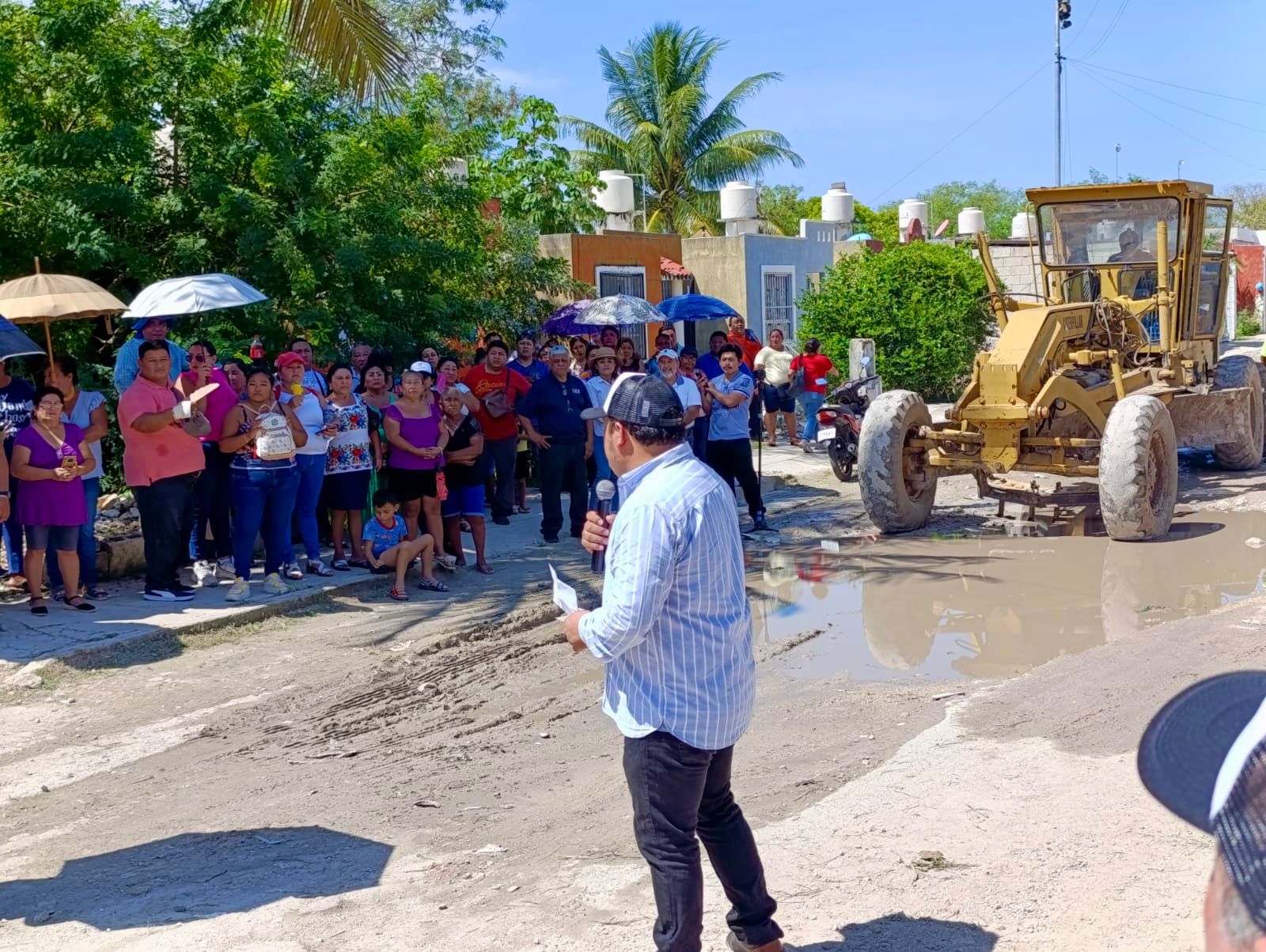 Específicamente los trabajos se realizarán en la calle 23 por 2-B y 2-C del citado fraccionamiento y la calurosa mañana no fue impedimento para que decenas de familias que se beneficiarán con los trabajos salieran a escuchar el alcalde y participaran en el banderazo de inicio.