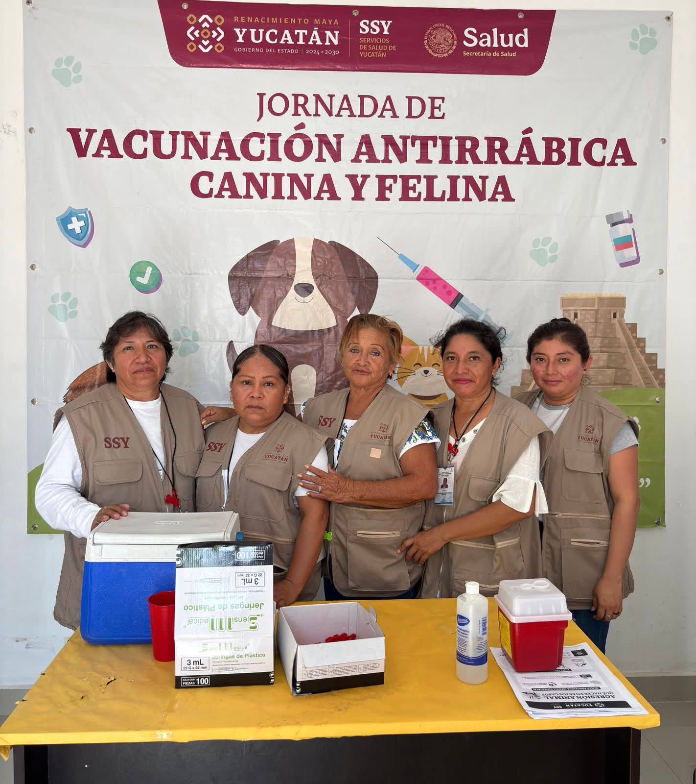 La actividad fue realizada de manera coordinada entre la Dirección de Salud Municipal y los Servicios de Salud de Yucatán, garantizando la correcta aplicación de los biológicos bajo los protocolos establecidos.