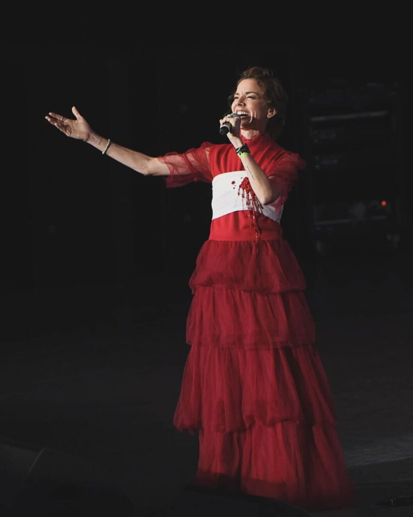 A su lado, un ensamble acústico de cuerdas, y ella con gitarra en manos, acompañó cada interpretación con delicadeza, construyendo una atmósfera íntima y envolvente.