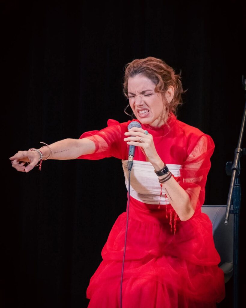 El espectáculo “Por si Volvieras” —una propuesta escénica que fusiona música y poesía— reunió diez canciones del álbum homónimo con una serie de lecturas que dejaron sin aliento a los asistentes. María alternó su voz cálida y potente con versos de su propia autoría, entre los que se entretejían temas de despedida, reencuentro y renacer.