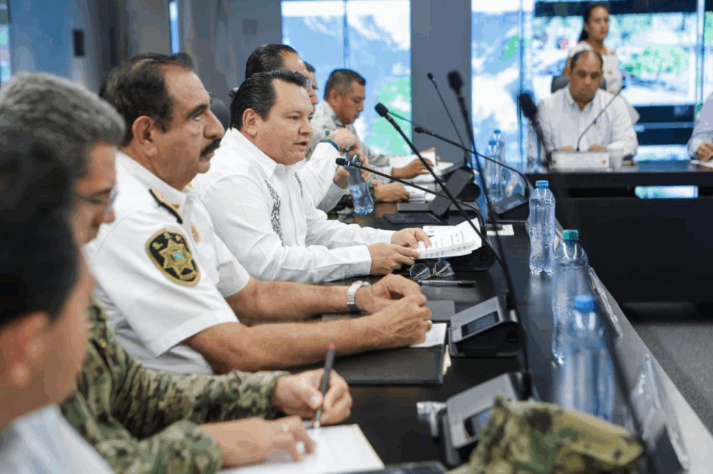 En la reunión estuvieron el secretario general de Gobierno, Omar Pérez Avilés; el jefe de Estado Mayor de la Novena Zona Naval en Yucatán, contralmirante Víctor Omar Mendoza Aguilar; el comandante de la 32/a Zona Militar, general de brigada Bernardo Reginaldo Reyes Herrera; y el fiscal general del Estado, Juan Manuel León León.