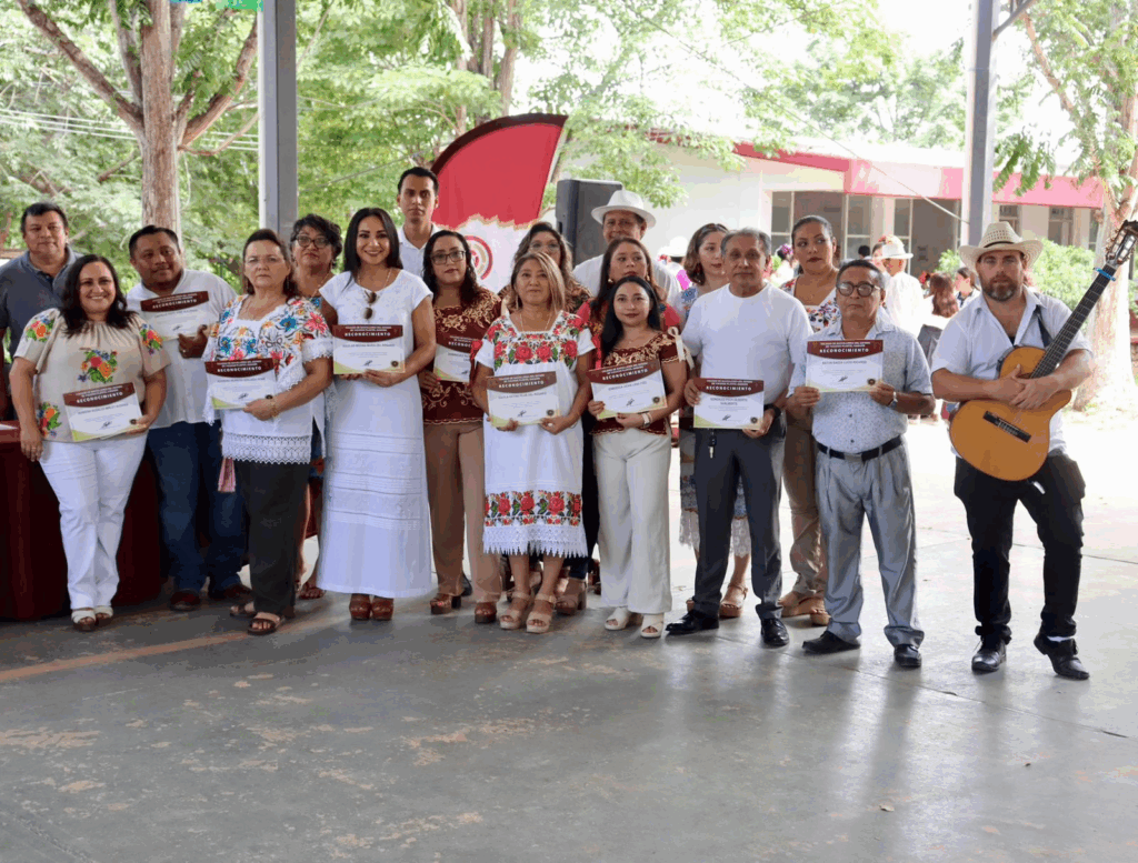 El evento arrancó con los honores al lábaro patrio y la entonación del himno nacional mexicano a cargo del joven Uriel Solís Herrera; previamente Israel Chan Moreno realizó el juramento a la bandera.