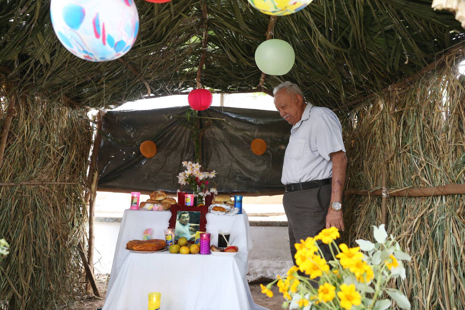 Las ofrendas incluyeron flores de temporada como el xtee o cresta de gallo, xpujuc o cosmos amarillo, amor seco y cempasúchil; además de xec de frutas, dulces típicos yucatecos y platillos tradicionales como el pib y el relleno negro. Como marca la costumbre, también se colocaron fotografías, velas, cruces y manteles blancos en honor a los seres queridos que partieron.