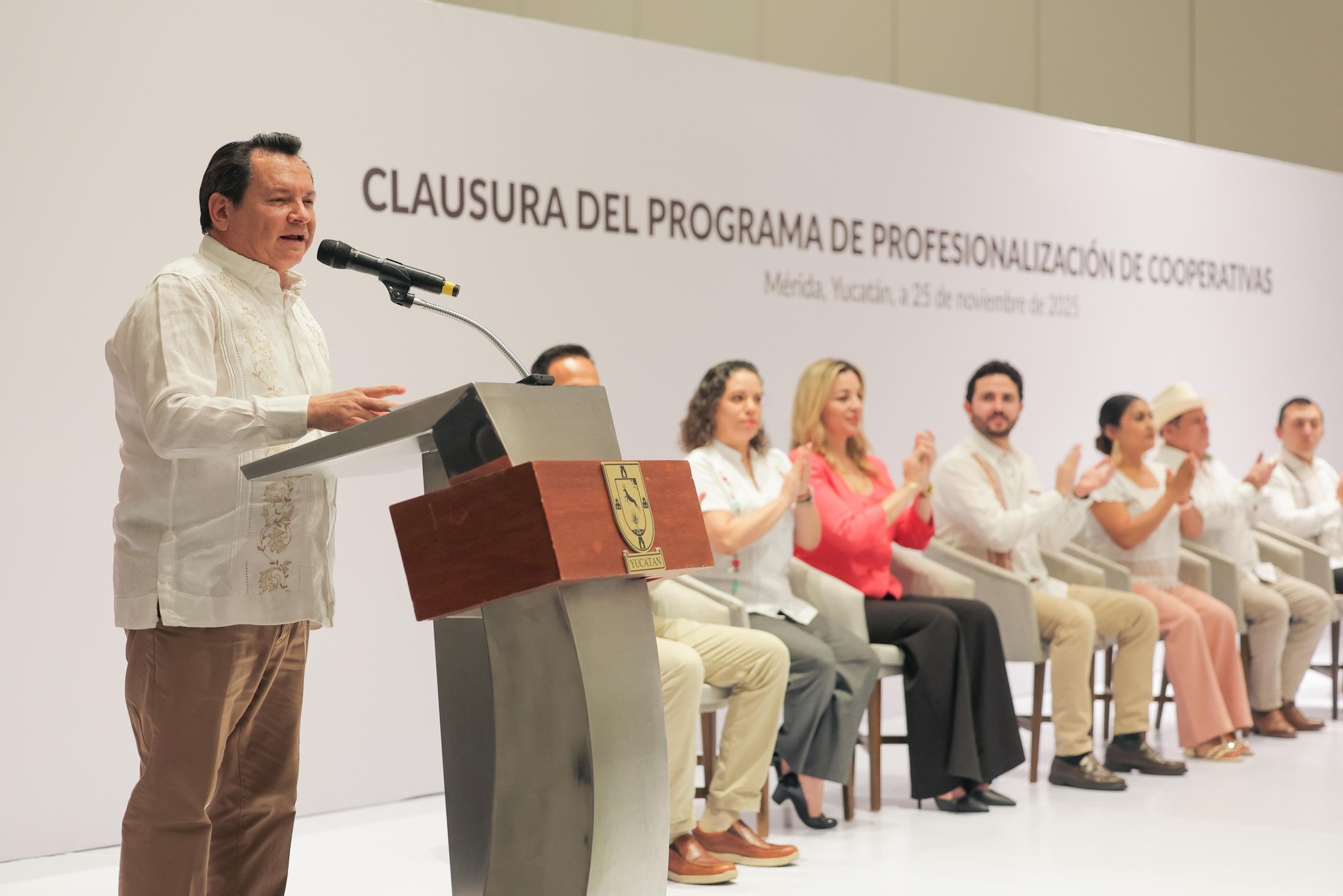 El Gobernador Joaquín Díaz Mena presidió la clausura del programa de Profesionalización de Cooperativas, que brinda herramientas y acompañamiento técnico para impulsar la economía social en Yucatán.