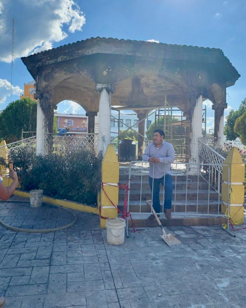 El alcalde Edwin Bojórquez Ramírez anunció este mediodía el inicio de los trabajos de rehabilitación del quiosco del parque principal, luego de que se quemara en días pasados por un petardo que cayó en el nacimiento de paja instalado en el sitio.