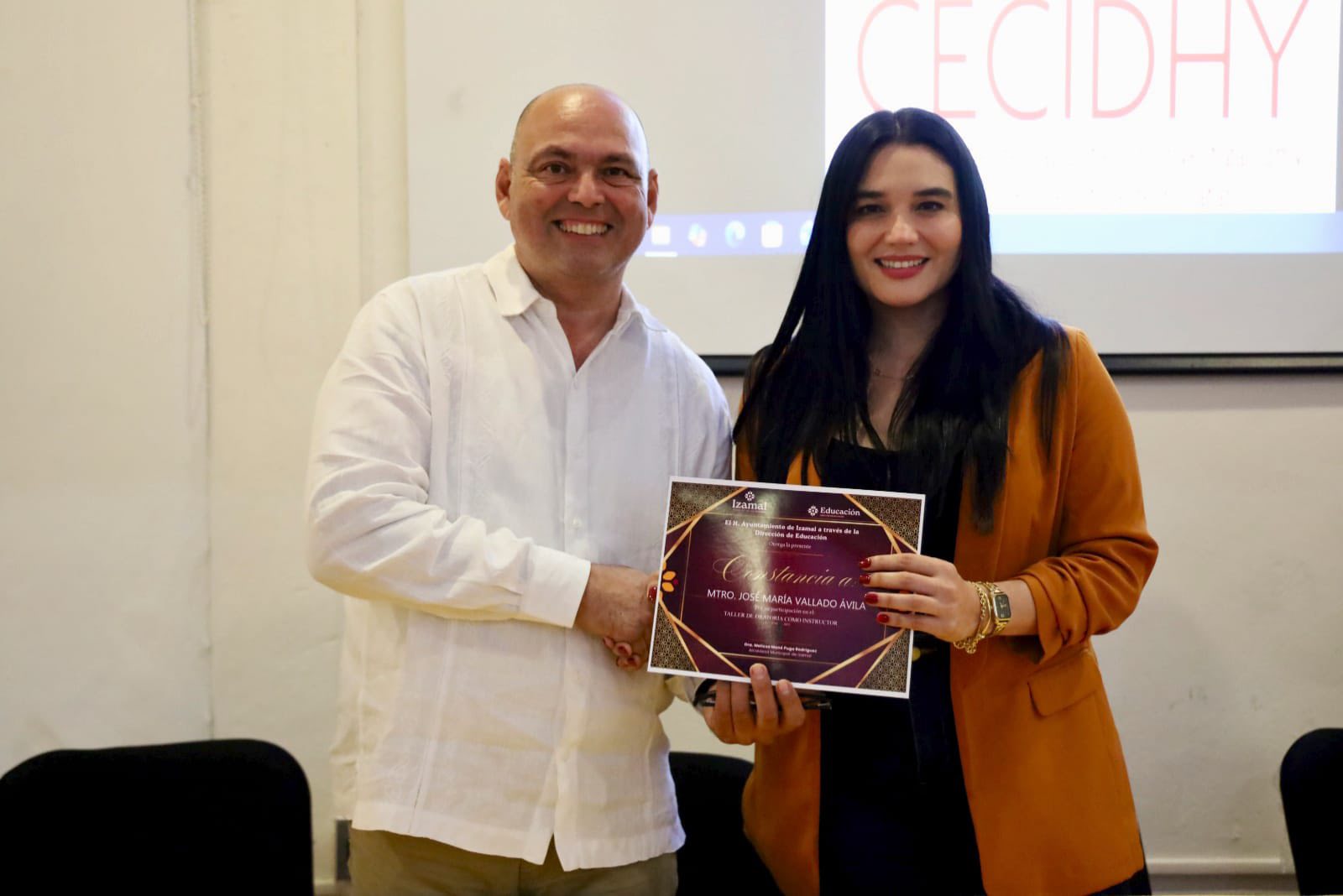 La alcaldesa de Izamal, Melissa Puga, participó en la clausura de los talleres de Lengua de Señas, Primeros Auxilios y Oratoria realizados en el Centro de Capacitación y Desarrollo Humano (CECIDHY), espacios orientados a fortalecer las habilidades y el desarrollo integral de la comunidad.