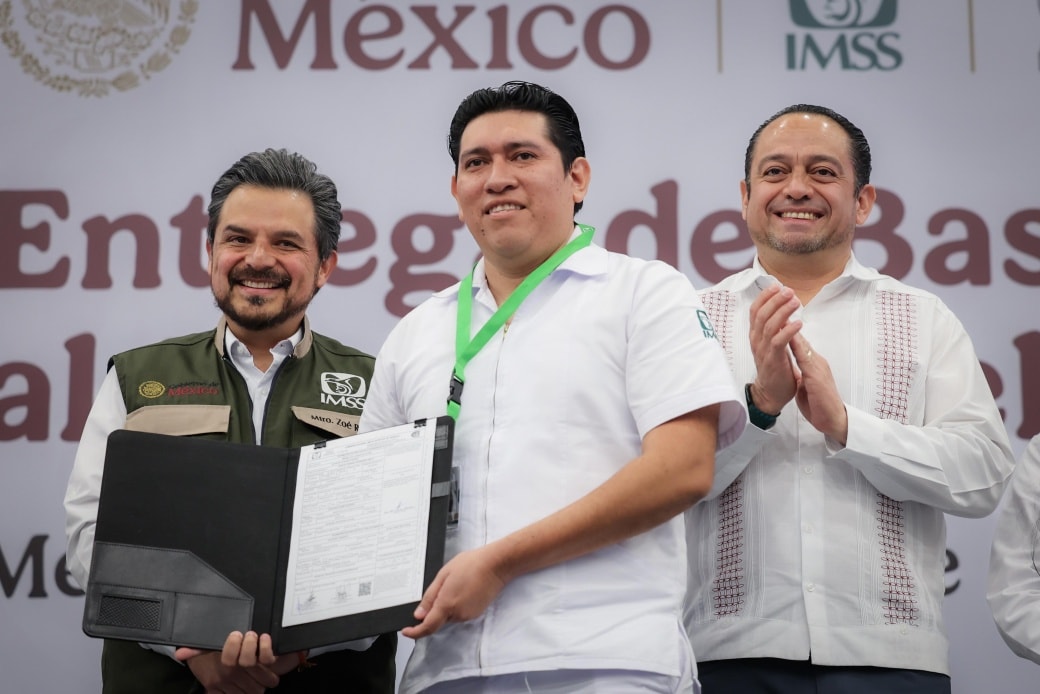 En representación del Gobernador Joaquín Díaz Mena y acompañado del director general del IMSS, Zoé Robledo Aburto, Pérez Avilés destacó que con la entrega de bases y nombramientos se otorga estabilidad laboral, continuidad en el servicio y mejores condiciones para el personal que ofrece atención en las unidades médicas.