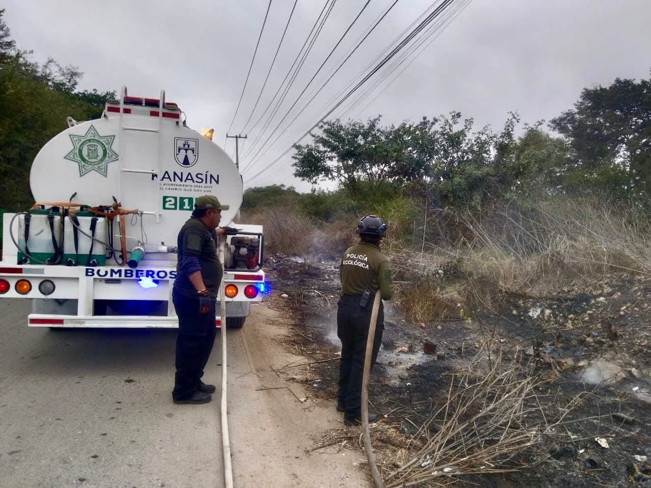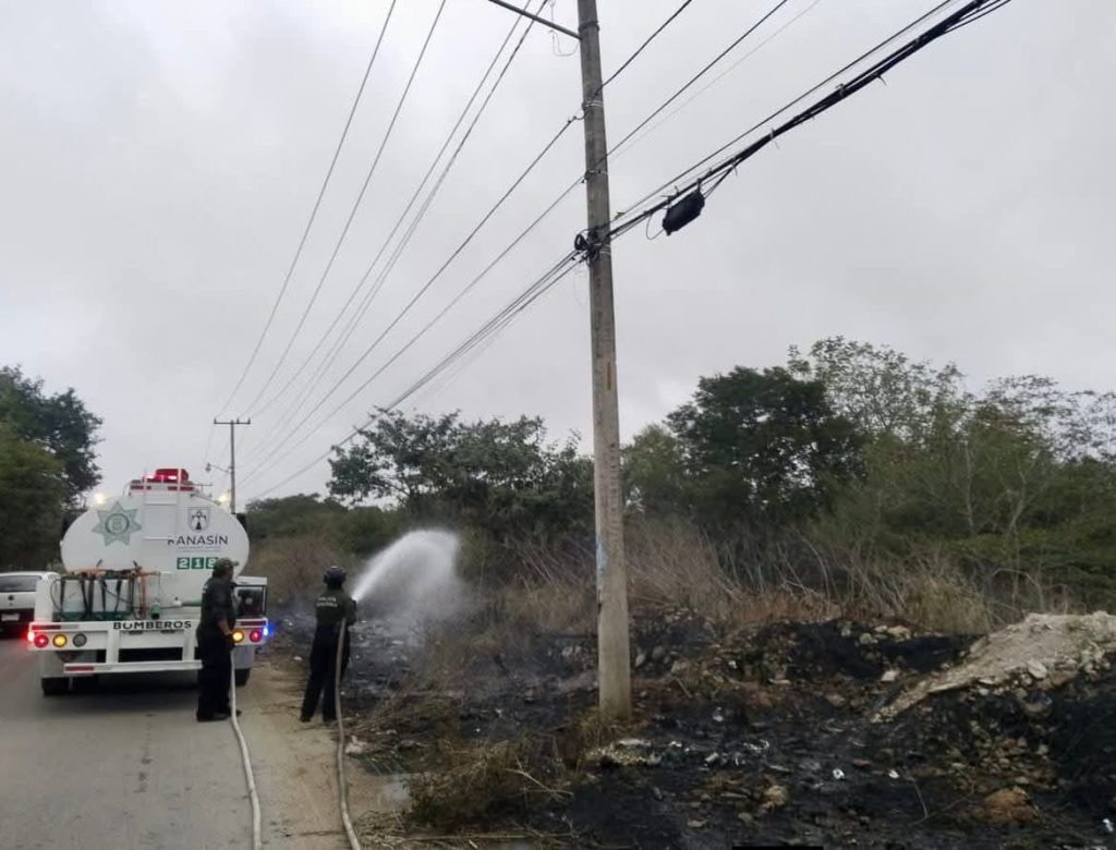 El combate de incendios se llevó al cabo de manera coordinada con Cuerpo de Bomberos y Policía de Kanasín.